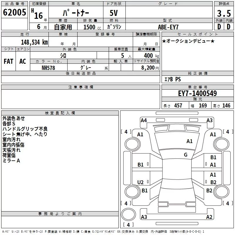 Honda PARTNER с аукциона Японии TAA Kinki лот № 62005