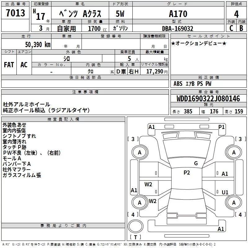 Mercedes-Benz A CLASS с аукциона Японии TAA Kinki лот № 7013