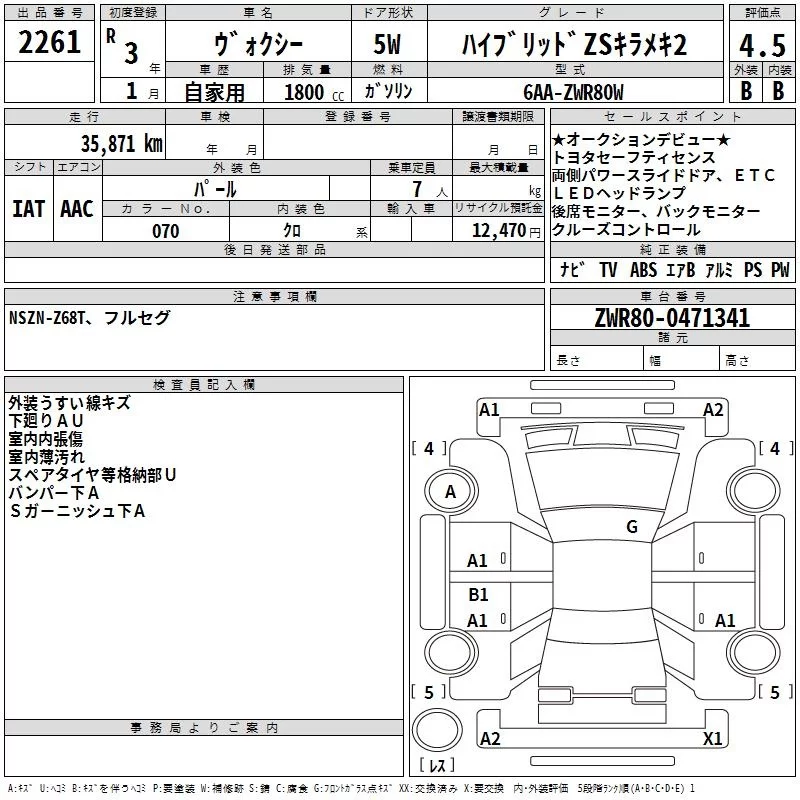 Toyota VOXY с аукциона Японии TAA Kinki лот № 2261