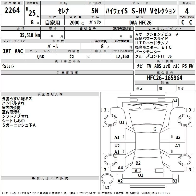 Nissan SERENA с аукциона Японии TAA Kinki лот № 2264