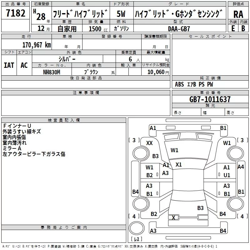 Honda FREED с аукциона Японии TAA Kinki лот № 7182