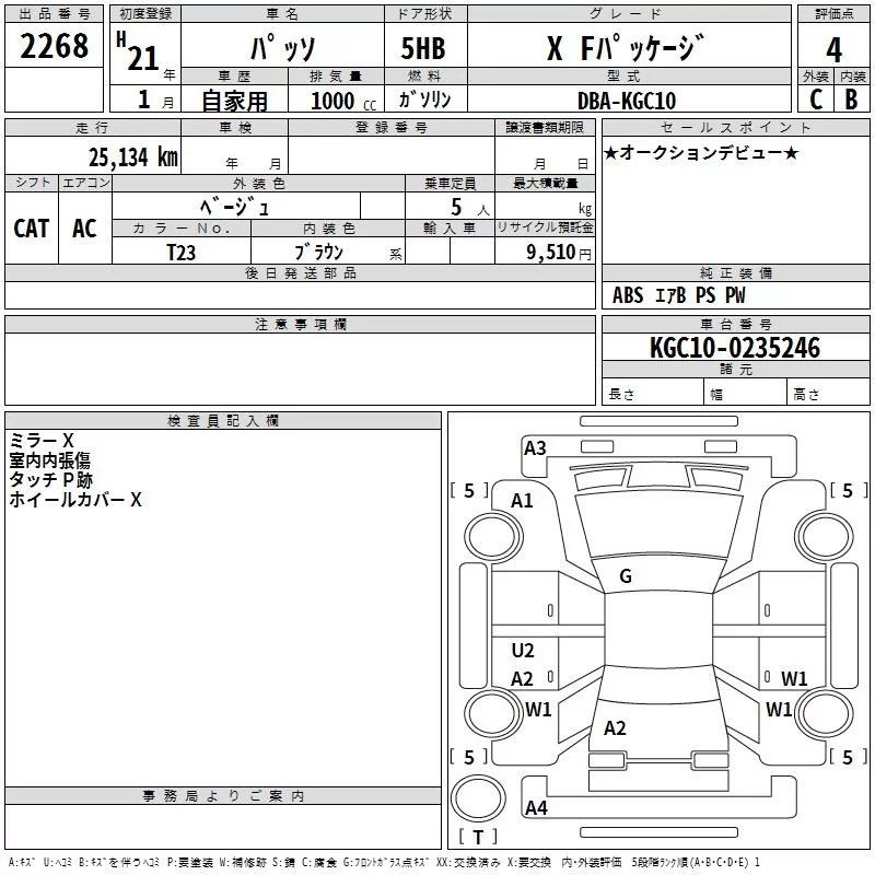 Toyota PASSO с аукциона Японии TAA Kinki лот № 2268
