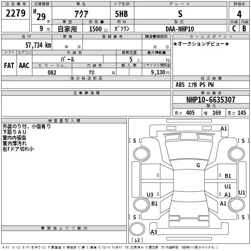 Toyota AQUA с аукциона Японии TAA Kinki лот № 2279