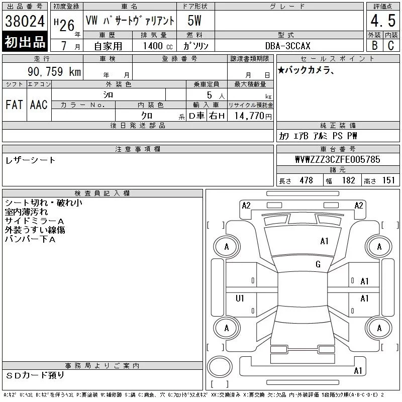 Volkswagen PASSAT VARIANT с аукциона Японии CAA Chubu лот № 38024