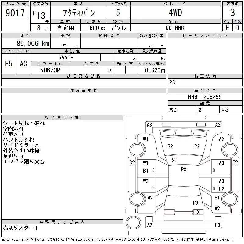 Honda ACTY VAN с аукциона Японии CAA Chubu лот № 9017