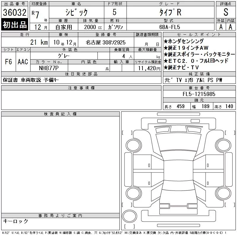 Honda CIVIC с аукциона Японии CAA Chubu лот № 36032