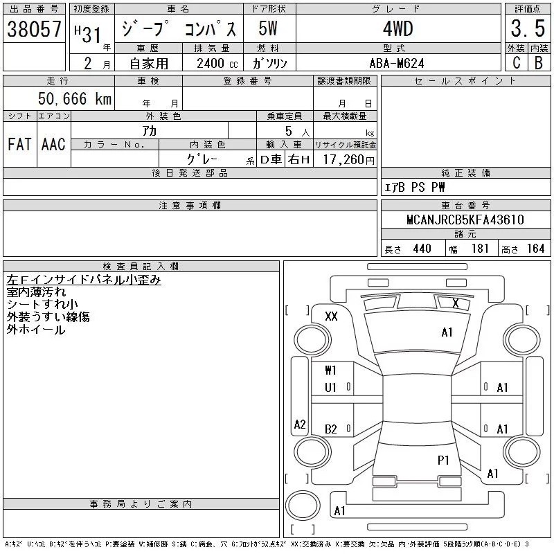 Chrysler JEEP COMPASS с аукциона Японии CAA Chubu лот № 38057