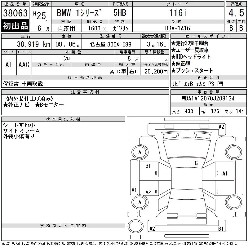 BMW 1-Series с аукциона Японии CAA Chubu лот № 38063