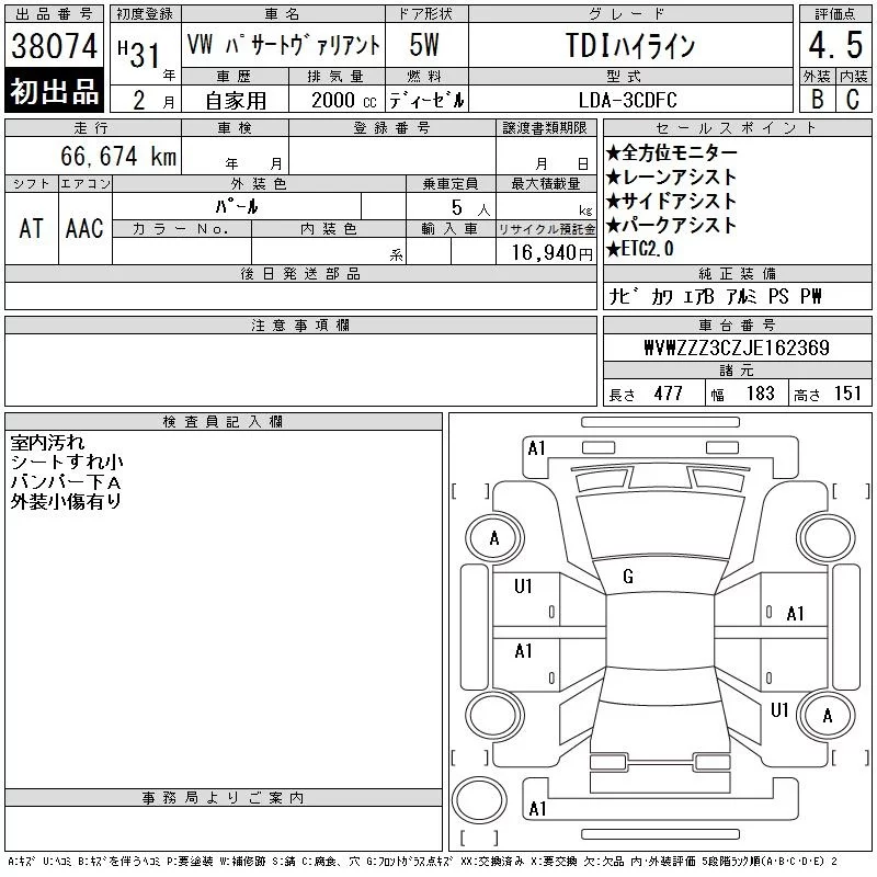 Volkswagen PASSAT VARIANT с аукциона Японии CAA Chubu лот № 38074