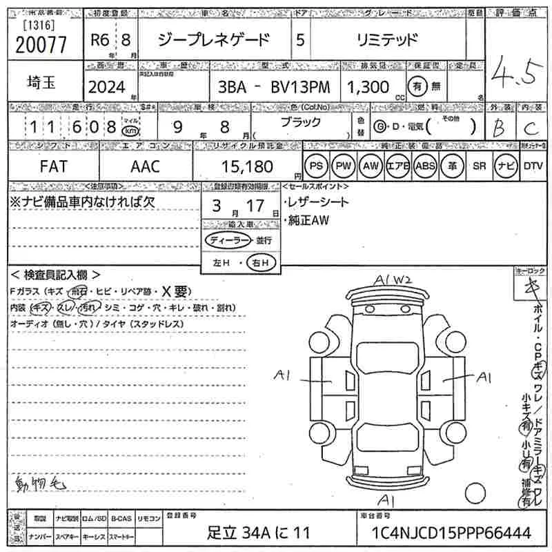 Chrysler JEEP RENEGADE с аукциона Японии MIRIVE Saitama лот № 20077