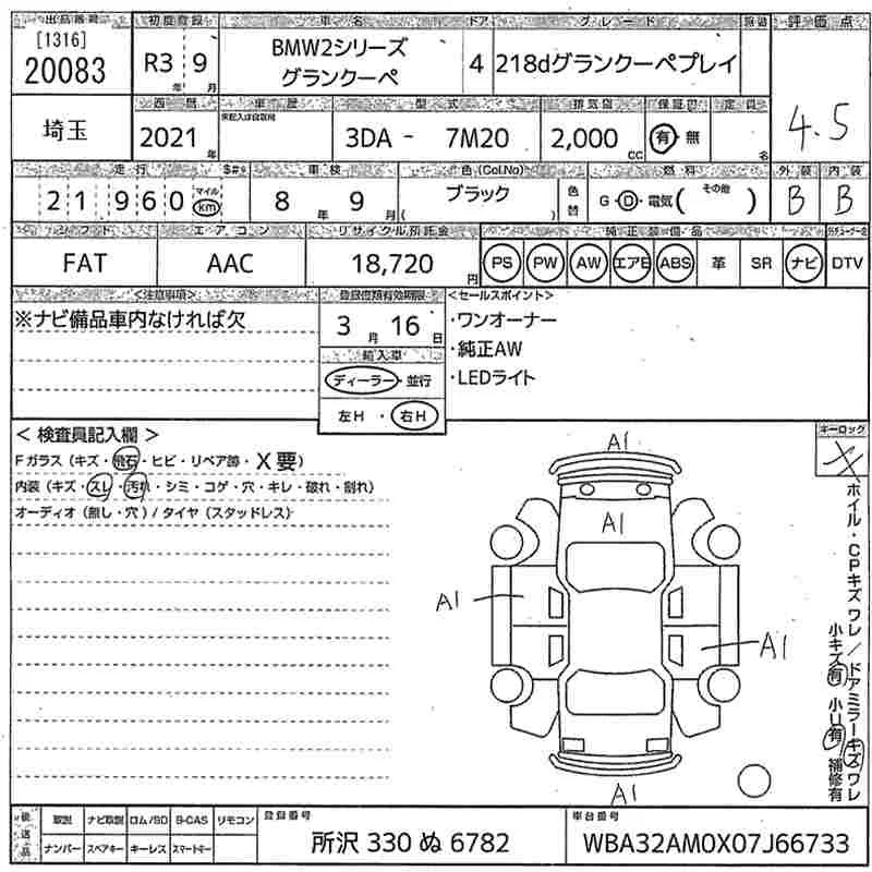 BMW 2-Series с аукциона Японии MIRIVE Saitama лот № 20083