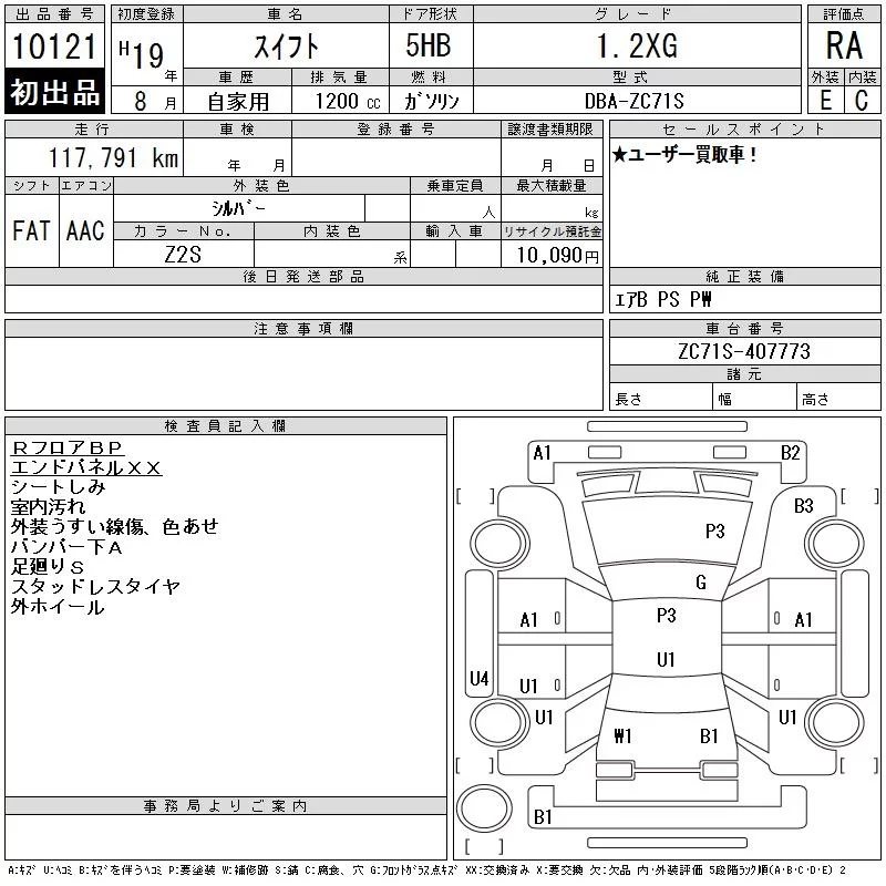 Suzuki SWIFT с аукциона Японии CAA Chubu лот № 10121