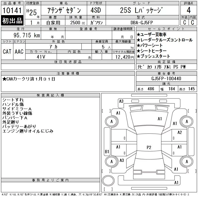 Mazda ATENZA SEDAN с аукциона Японии CAA Chubu лот № 10141
