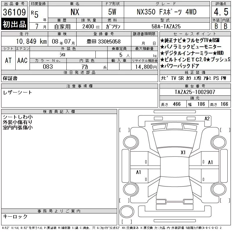 Lexus NX с аукциона Японии CAA Chubu лот № 36109