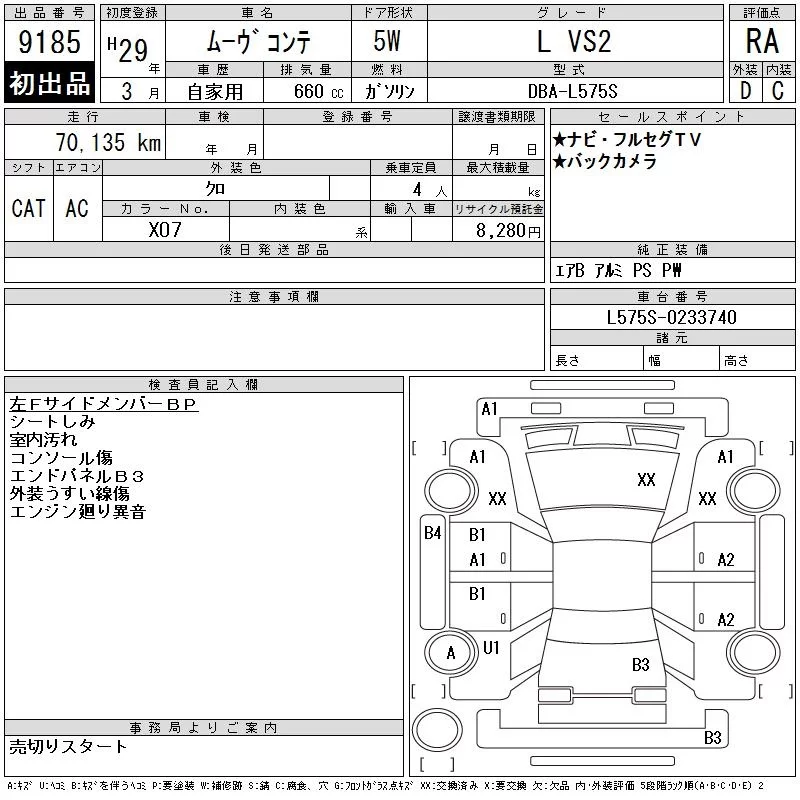Daihatsu MOVE CONTE с аукциона Японии CAA Chubu лот № 9185