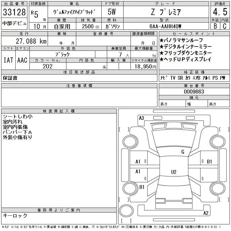Toyota VELLFIRE с аукциона Японии CAA Chubu лот № 33128