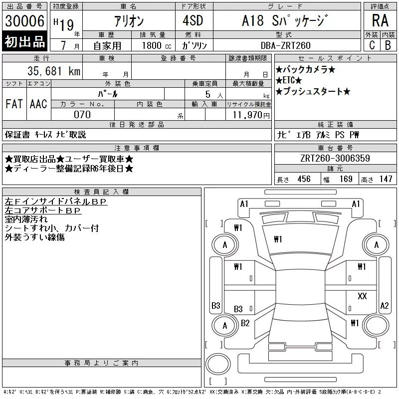 Toyota ALLION с аукциона Японии CAA Chubu лот № 30006