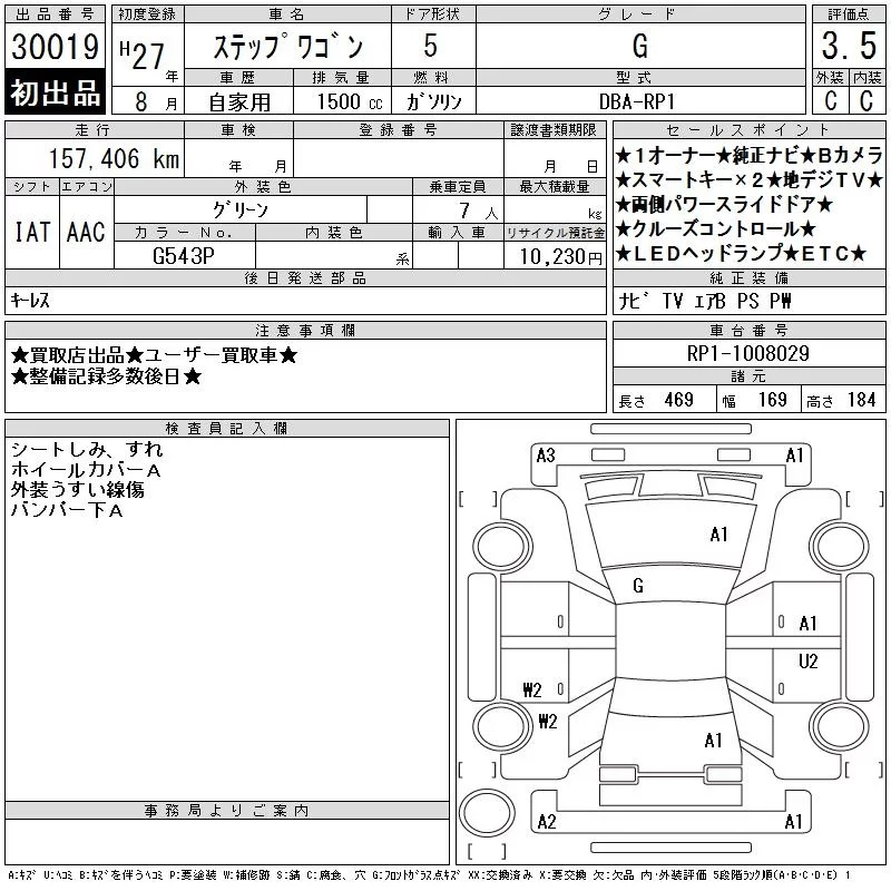 Honda STEP WAGON с аукциона Японии CAA Chubu лот № 30019