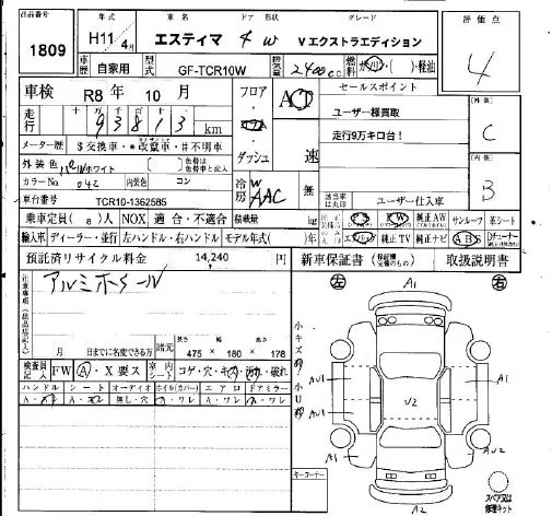 Toyota ESTIMA с аукциона Японии IAA Osaka лот № 1809