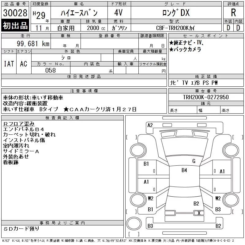 Toyota HIACE VAN с аукциона Японии CAA Chubu лот № 30028