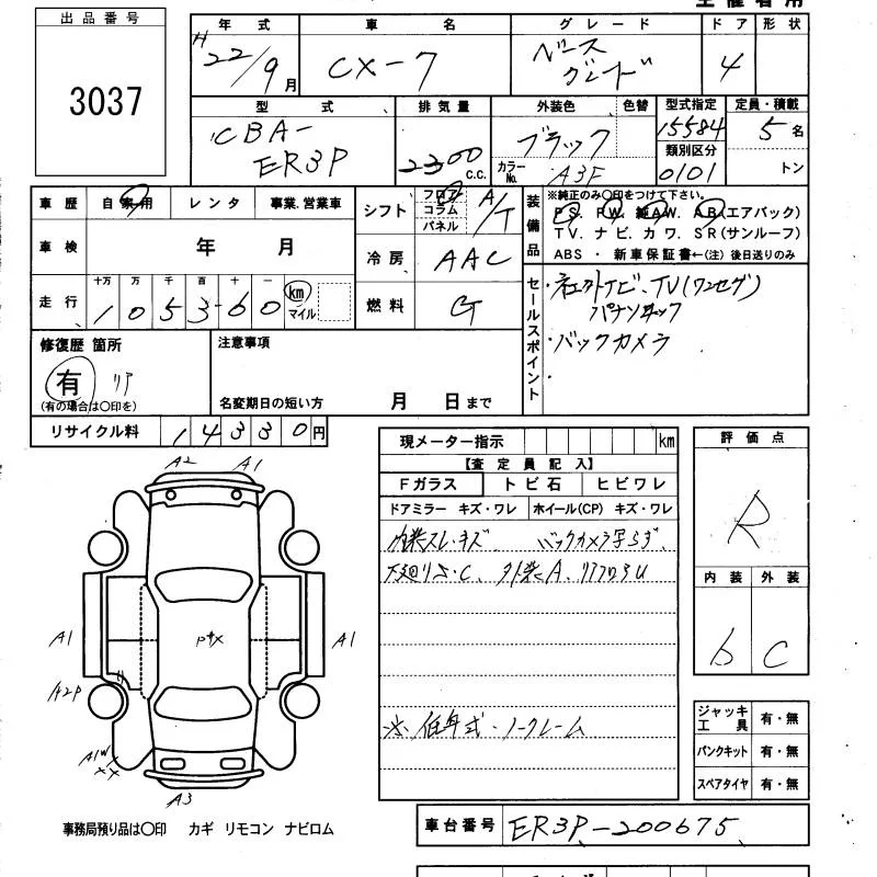 Mazda CX-7 с аукциона Японии KCAA Minami Kyushu лот № 3037