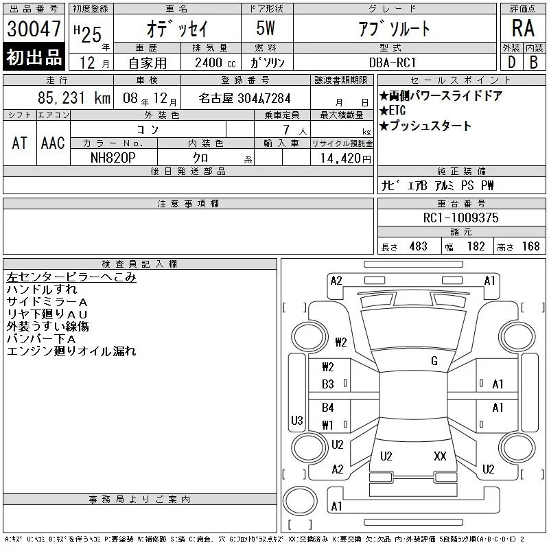 Honda ODYSSEY с аукциона Японии CAA Chubu лот № 30047
