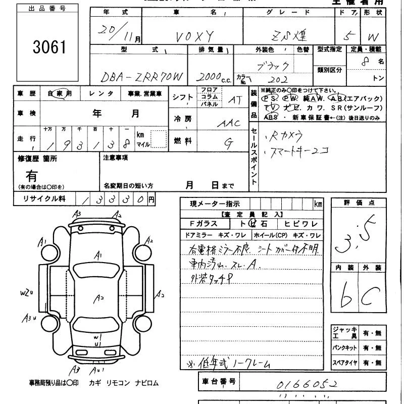 Toyota VOXY с аукциона Японии KCAA Minami Kyushu лот № 3061