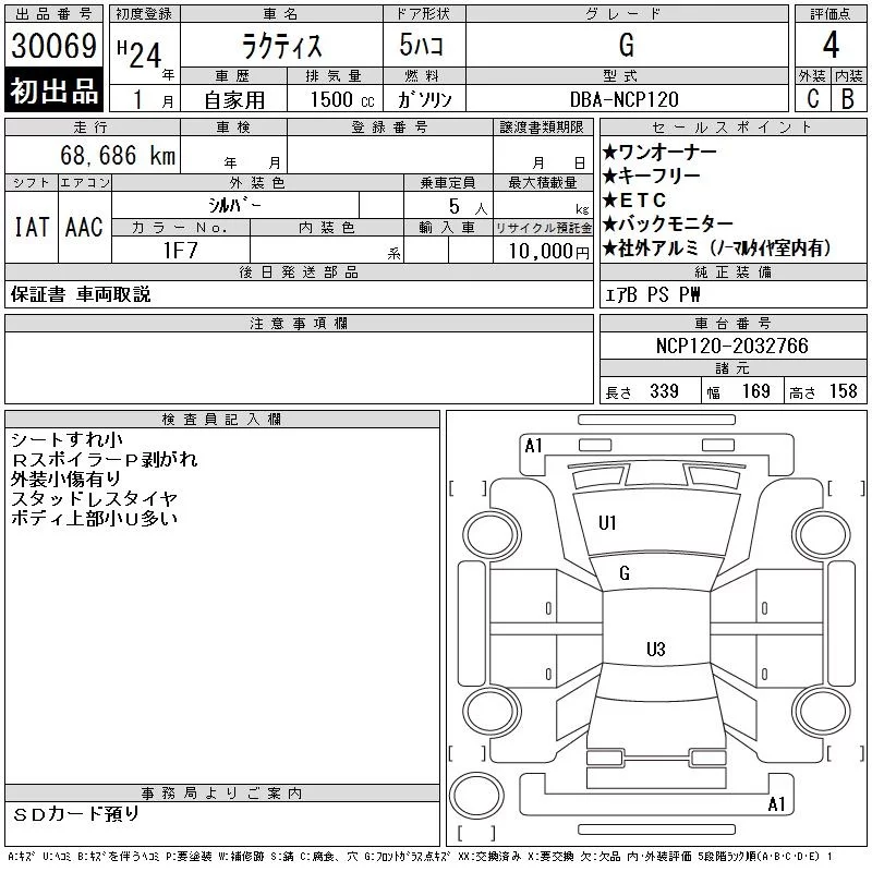Toyota RACTIS с аукциона Японии CAA Chubu лот № 30069