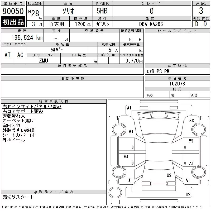 Suzuki SOLIO с аукциона Японии CAA Chubu лот № 90050