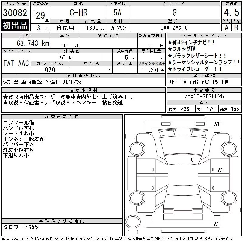 Toyota C-HR с аукциона Японии CAA Chubu лот № 30082