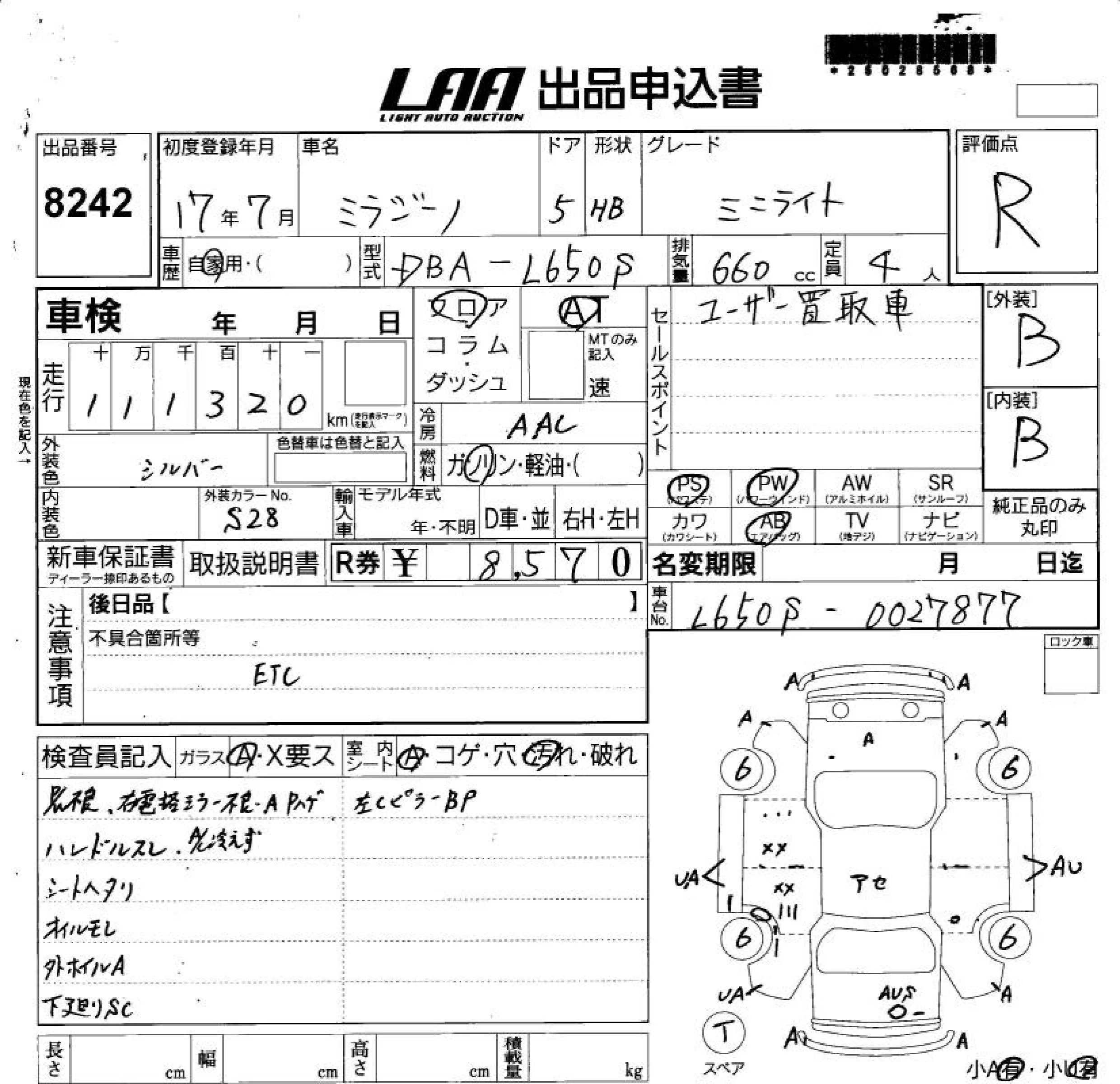 Daihatsu MIRA с аукциона Японии LAA Shikoku лот № 8242