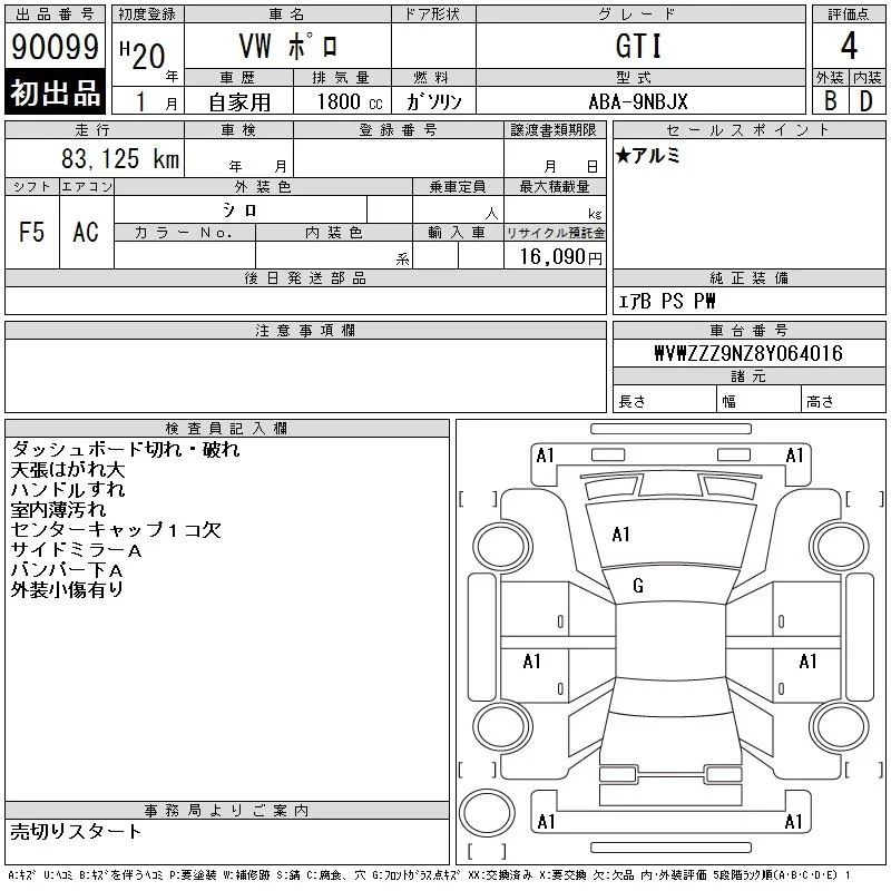Volkswagen POLO с аукциона Японии CAA Chubu лот № 90099