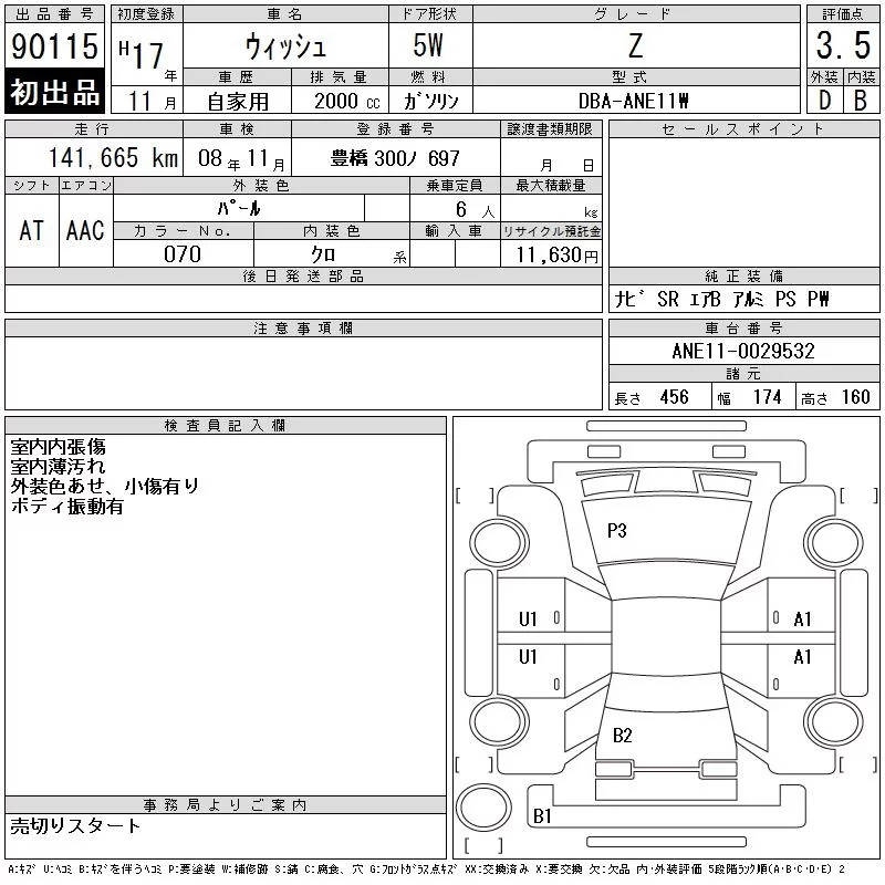 Toyota WISH с аукциона Японии CAA Chubu лот № 90115
