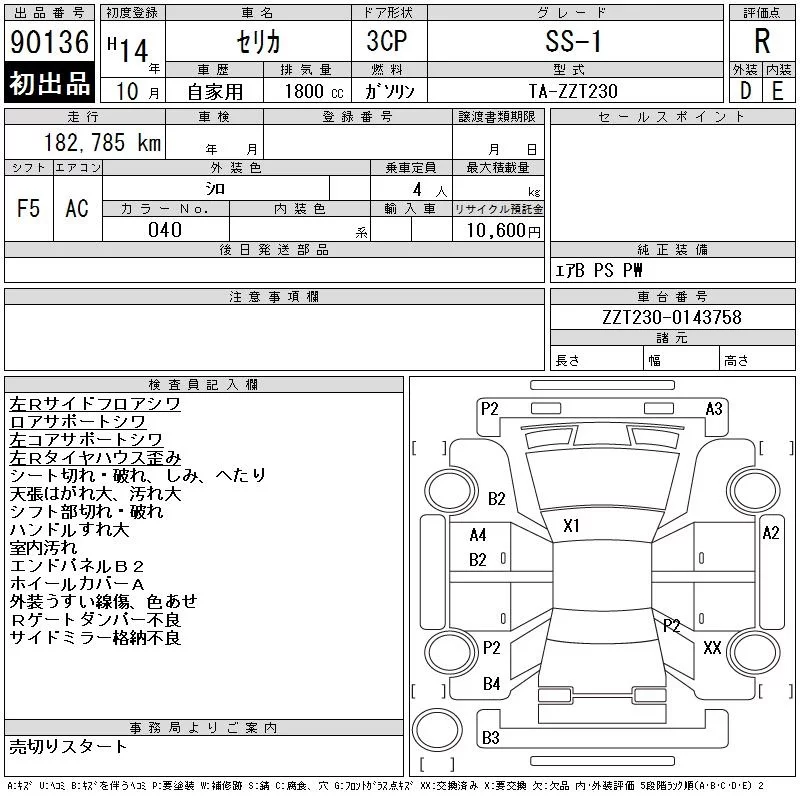 Toyota CELICA с аукциона Японии CAA Chubu лот № 90136