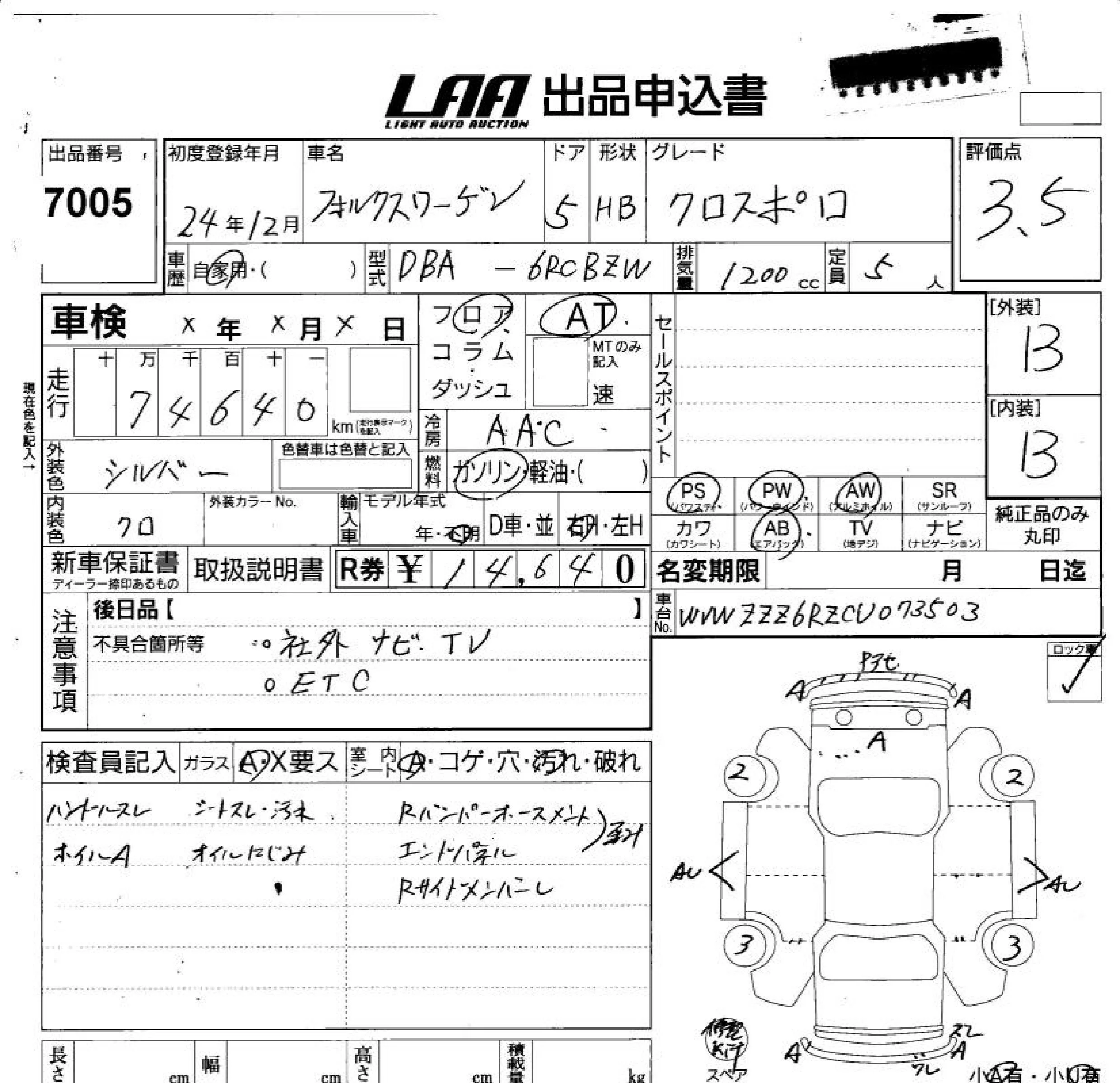 Volkswagen CROSS POLO с аукциона Японии LAA Shikoku лот № 7005