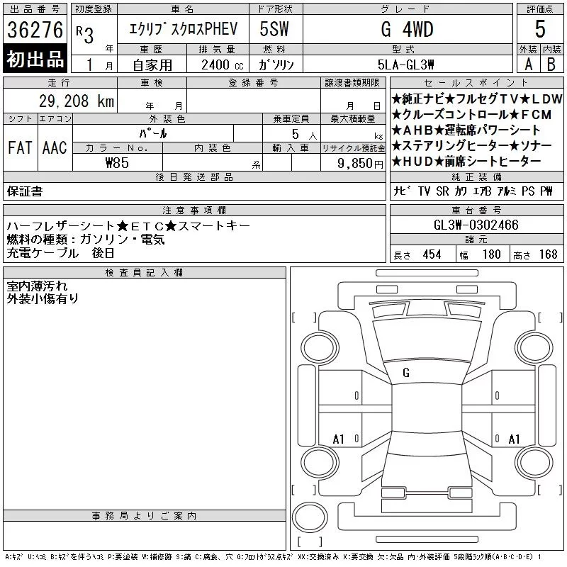 Mitsubishi ECLIPSE CROSS с аукциона Японии CAA Chubu лот № 36276
