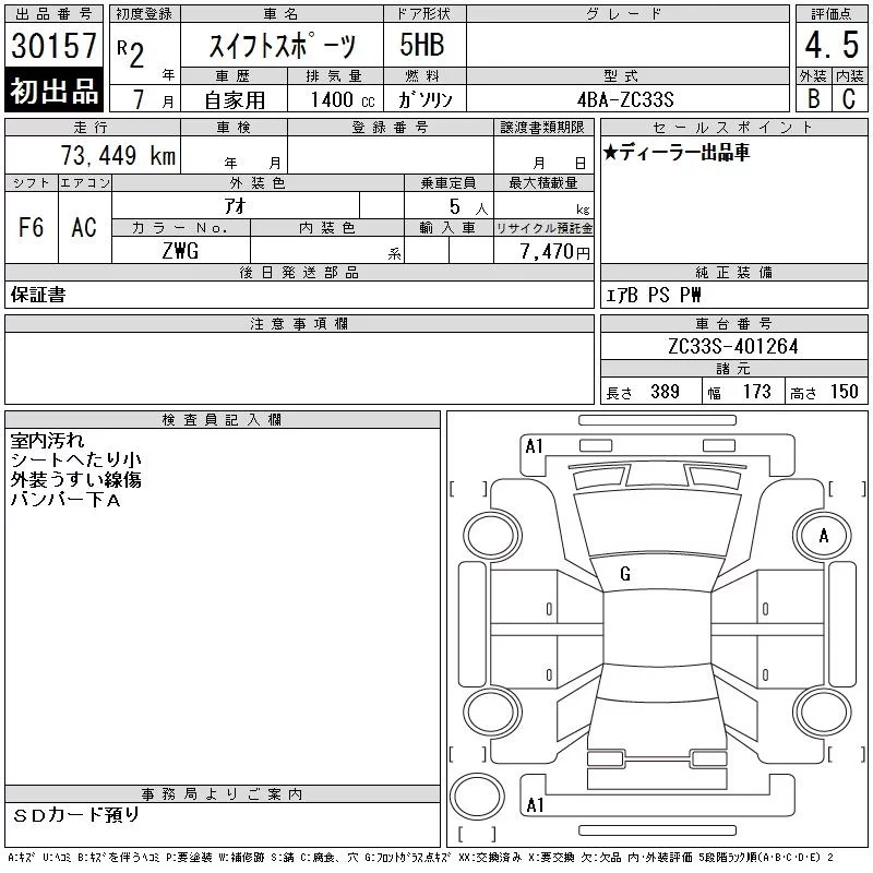 Suzuki SWIFT с аукциона Японии CAA Chubu лот № 30157