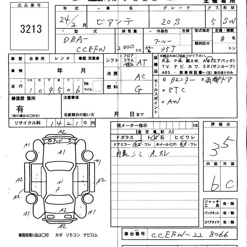 Mazda BIANTE с аукциона Японии KCAA Minami Kyushu лот № 3213
