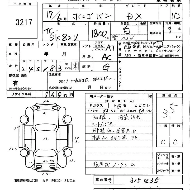 Mazda BONGO VAN с аукциона Японии KCAA Minami Kyushu лот № 3217