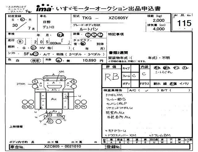 Hino DUTRO с аукциона Японии Isuzu Tokyo лот № 115