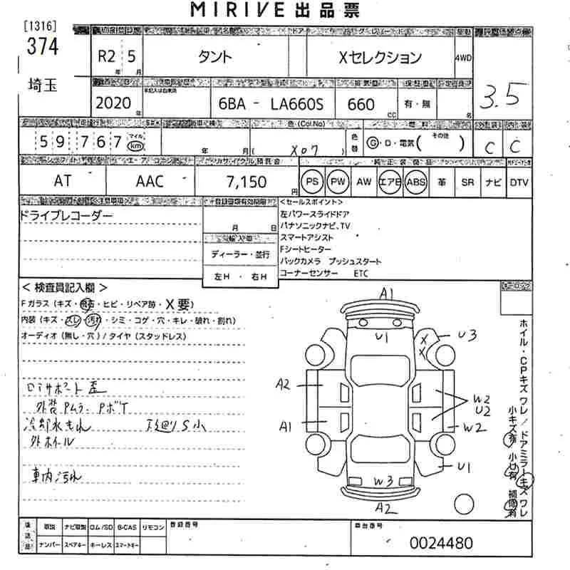 Daihatsu TANTO с аукциона Японии MIRIVE Saitama лот № 374