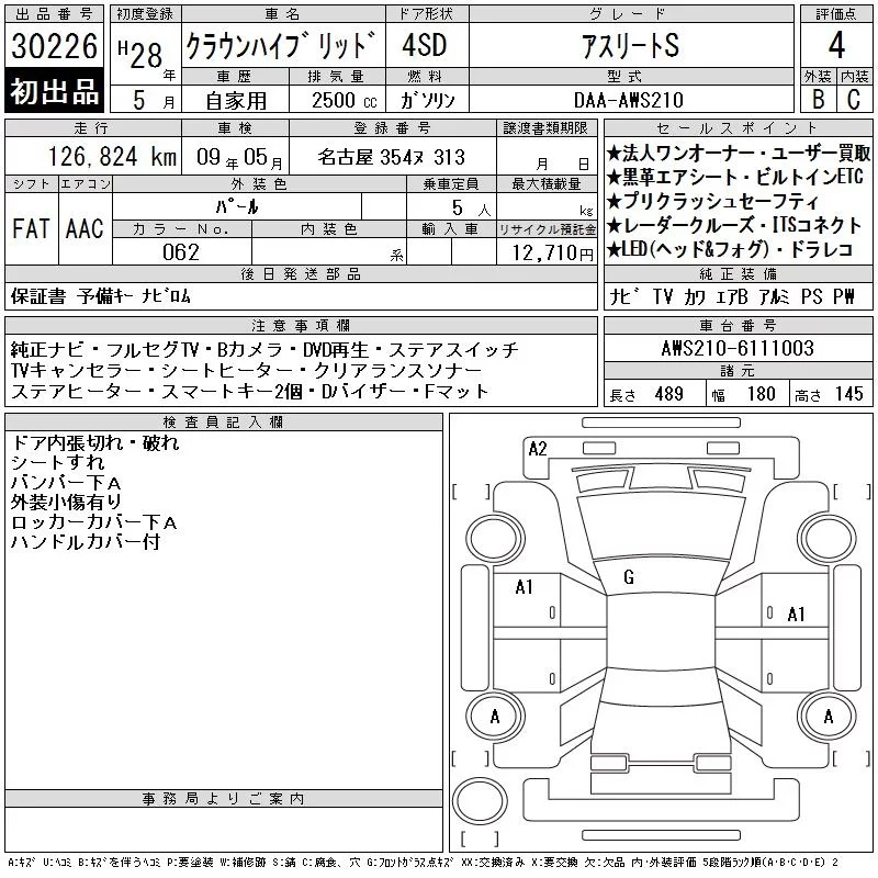 Toyota CROWN с аукциона Японии CAA Chubu лот № 30226