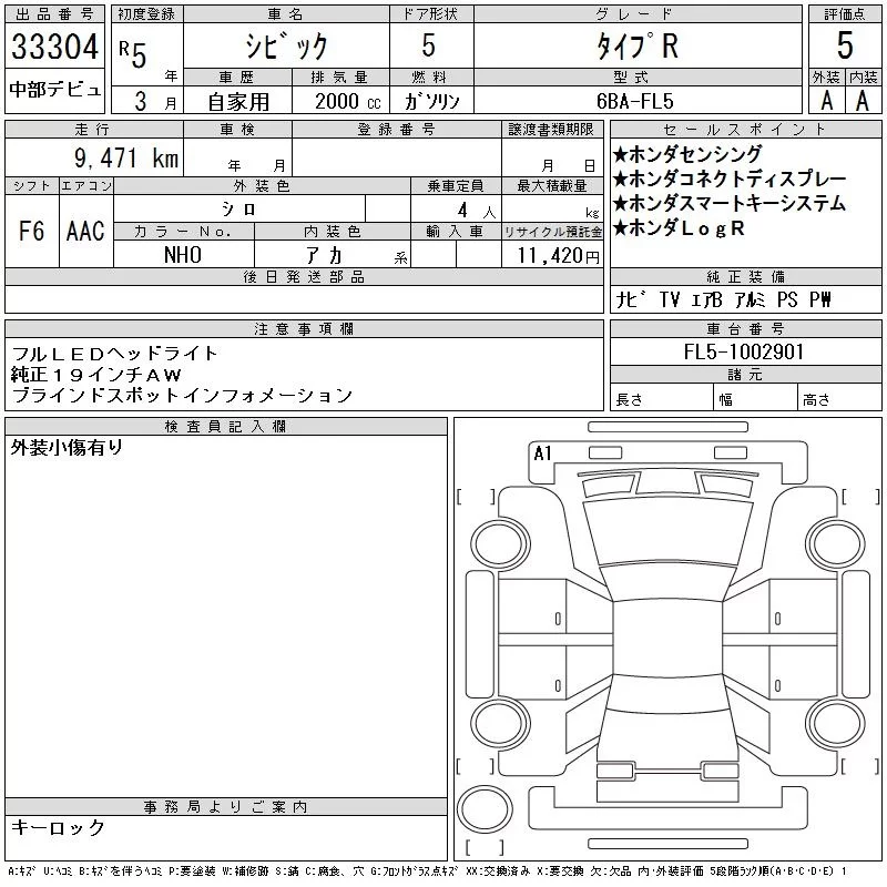 Honda CIVIC с аукциона Японии CAA Chubu лот № 33304