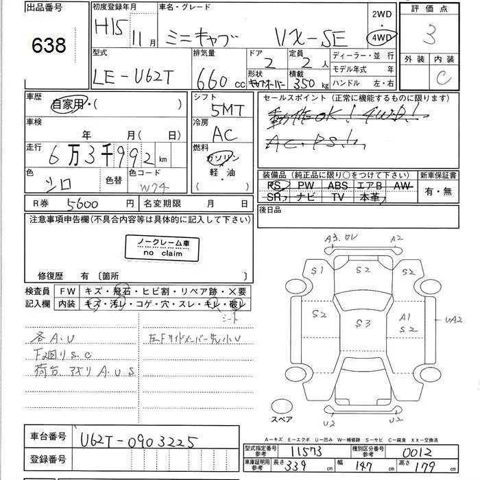 Mitsubishi MINICAB TRUCK с аукциона Японии JU Ishikawa лот № 638