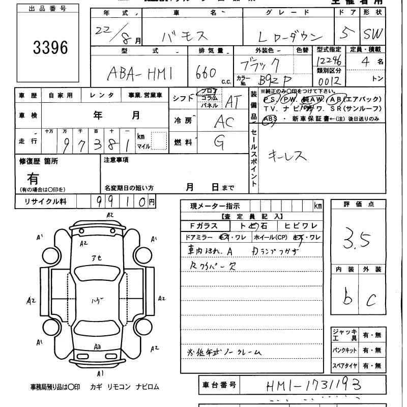 Honda VAMOS с аукциона Японии KCAA Minami Kyushu лот № 3396