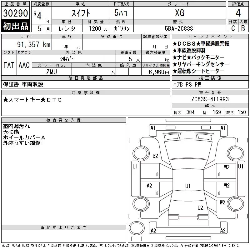 Suzuki SWIFT с аукциона Японии CAA Chubu лот № 30290