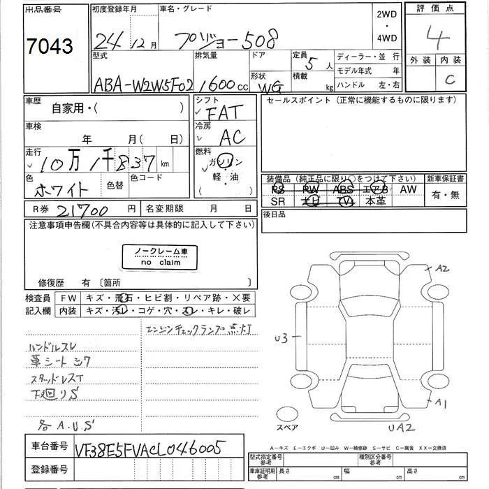 Peugeot 508 с аукциона Японии JU Ishikawa лот № 7043