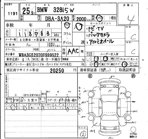 BMW 3-Series с аукциона Японии IAA Osaka лот № 1191