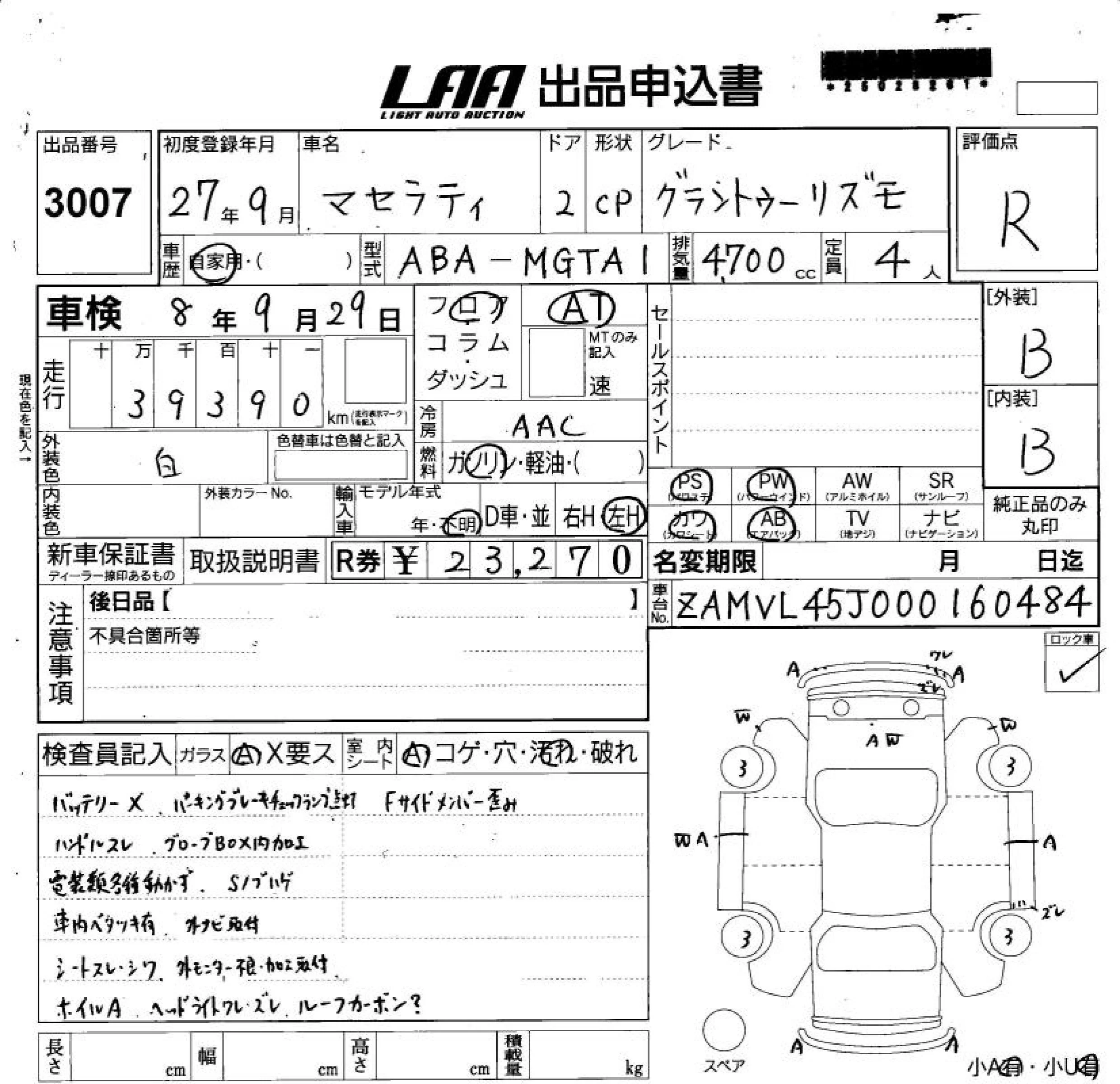 Maserati GRANTURISMO с аукциона Японии LAA Shikoku лот № 3007