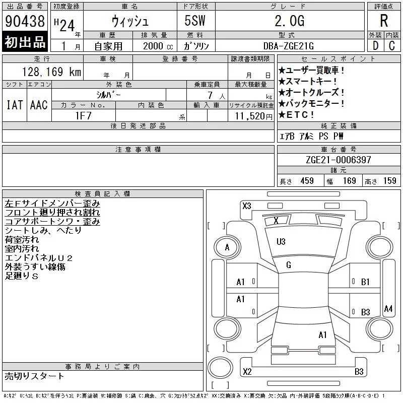 Toyota WISH с аукциона Японии CAA Chubu лот № 90438